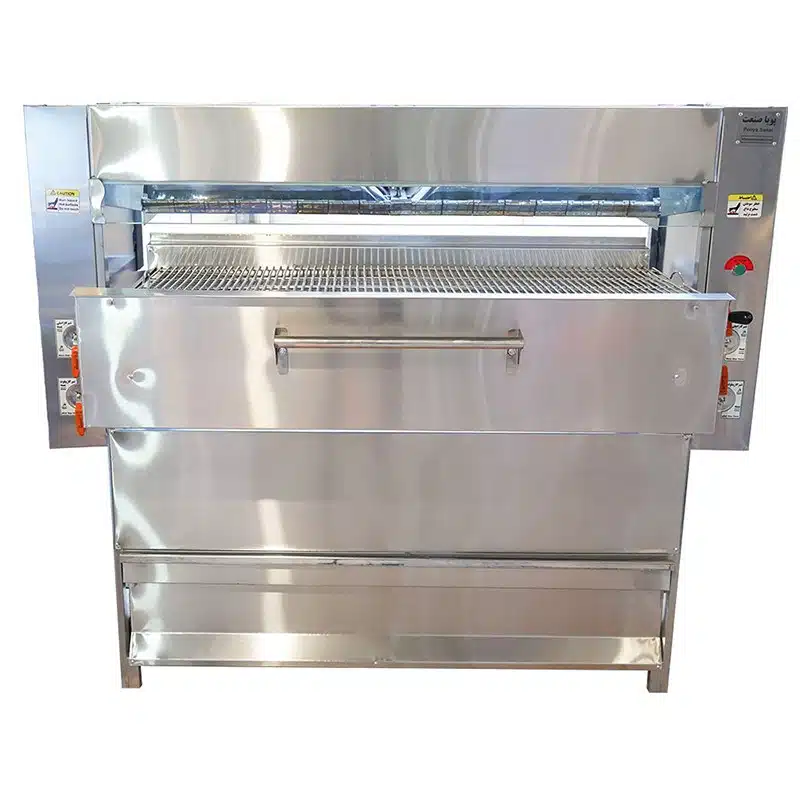 The electric salamander grills are useful appliances in every industrial kitchen. Since Pooyasanat Company has manufactured these appliances available in different models and sizes, it is a suitable equipment for all food cooking centers. The capability of adjusting the temperature and the height of the grid, help chef cook various kind of meat with different heat power.