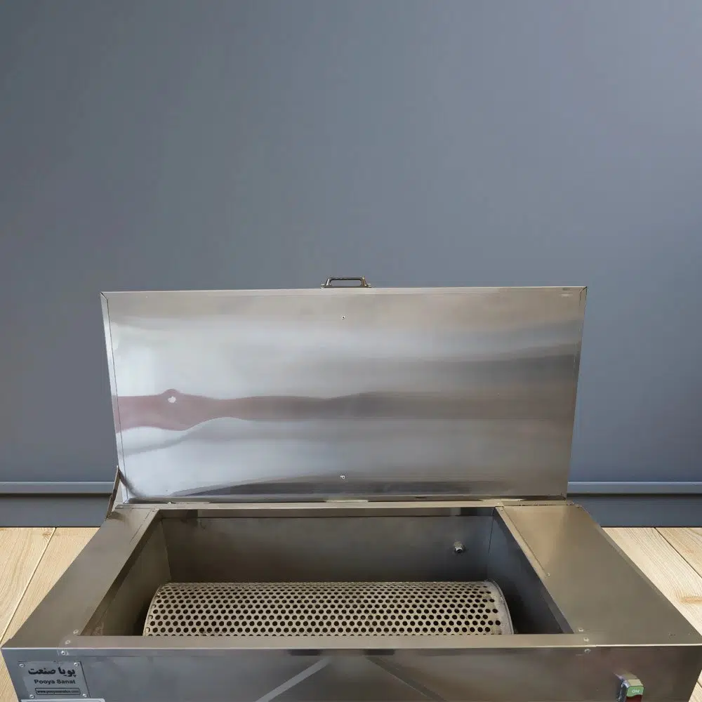 The Pooyasanat industrial automatic skewer washing machine is designed to wash kebab skewers at high speed without scratching the surface, ensuring thorough cleaning without leaving grease, fat, or residue. This machine significantly reduces labor costs while maintaining consistent hygiene standards in commercial kitchens.